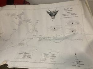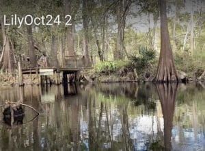 Big Awesome swallets “is the most upstream of the Siphon Creek Cave System.” Accessible by boat, on the right side of the river heading downstream, after the shoals, marked by a large cypress, jog into a canopied space beside an island, and is dominated by a big circular pool. The hole is surrounded by a ledge. SRWMD once estimated that Big Awesome swallet takes in about 150 cfs.
