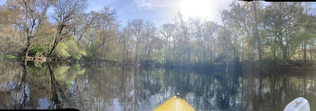 In 2021, Alachua Conservation Trust purchased a 195 acre tract of land on the Santa Fe River and called it Little Awesome Preserve. The name Little Awesome refers to a feature on the Santa Fe River that is only accesible by boat and not always visible. Recently it has been covered by a large tree trunk and hidden from view. Other times it is covered in vegetation. When the river is high enough to submerge this circular ‘portal,’ it emits the rushing sound of water swirling down a drain. When I first encountered Little Awesome, I feared it. The force of the water rushing down this circular chimney appeared like it could pull my canoe down. After a time I realized it was safe to canoe over it, even allowing myself to submerge into it and allowing the siphon to spin me around.